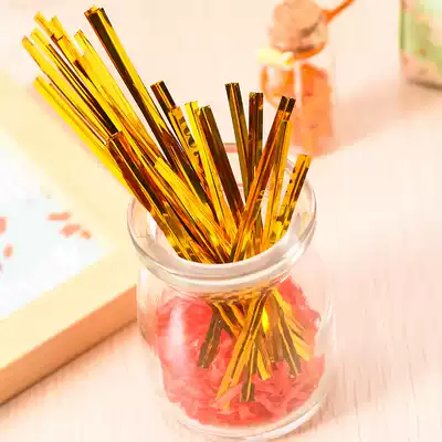 Golden cable ties, strapping lines, gold and silver cable ties, food gift packaging decoration, 6cm golden sealing rope, stall supply
