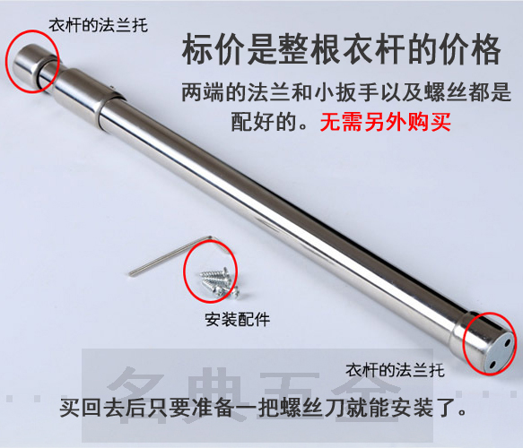 Full stainless steel thickened Telescopic Clothes Rod-Cloister Cloister Cloister Telescopic Rod-Rod Rack Explosive