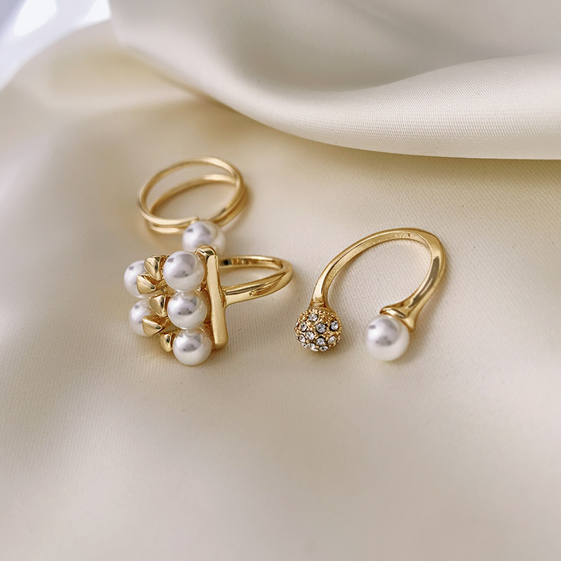 Art Mino Fashion Pearl Water Drill Ring Female Tide Knuckle Finger Personality Hyperbolic Forefinger Knuckle Tail Ring Tail Ring Net Red Ring