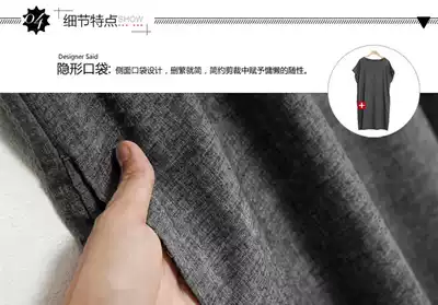 Maternity summer dress 2018 Korean version of the large size pure cotton hemp maternity skirt loose short-sleeved maternity mid-length skirt summer