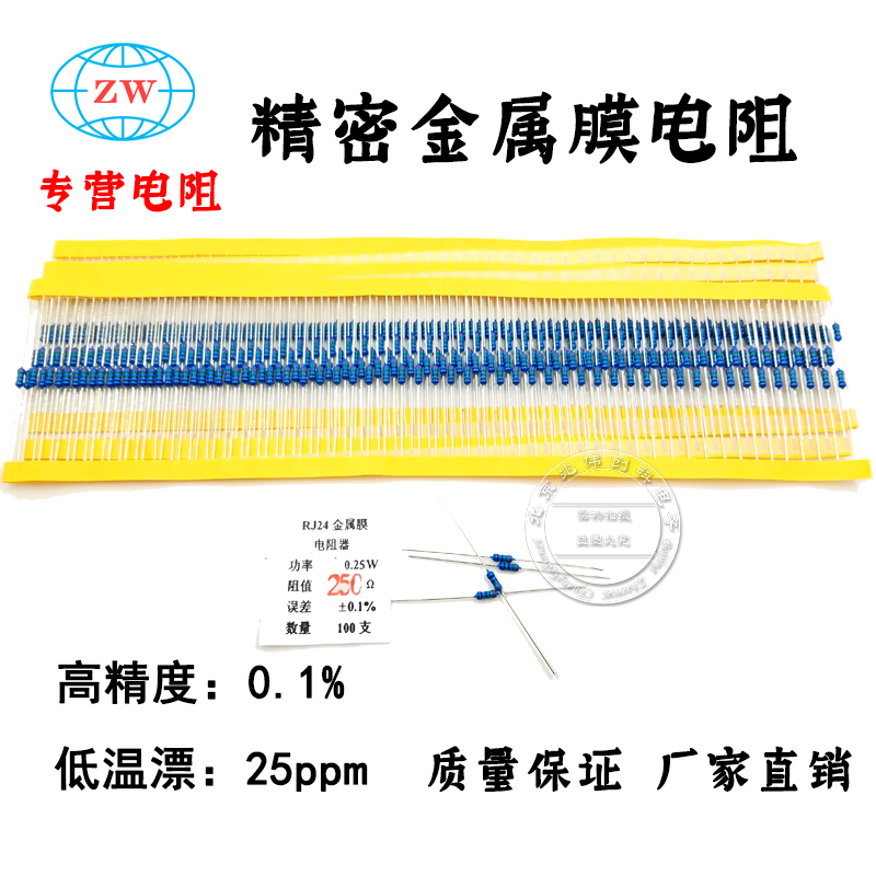 RJ24 Precision metal film resistor 0 1% 1 4W 250R 0 25W Low temperature drift 25ppm one thousandth