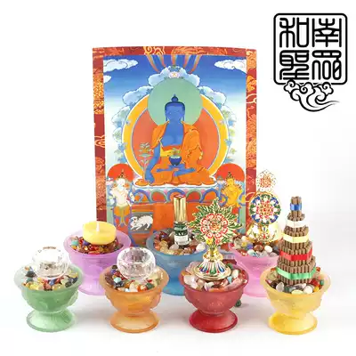Buddha Tang tantric eight cups imitation glazed oil lamp eight auspicious water supply Cup lamp for bowl ghee lamp holder lampstand