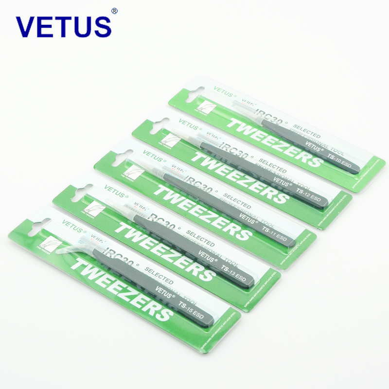 VETUS Antistatic Tweezers High Precision Stainless Steel Plus Hard Tweezer Pointed Elbow High Elastic Tweezer Clips-Taobao
