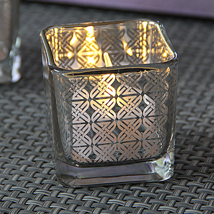 Simple European flower silver square glass small candlestick romantic candlelight dinner bar Western restaurant decoration decoration