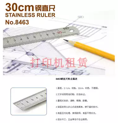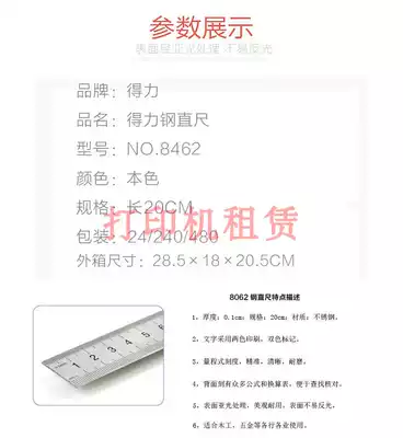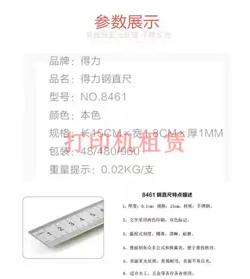 Del steel ruler 8461 ruler 20cm ruler 15cm ruler steel plate ruler 30cm ruler 50cm ruler 50cm student drawing tool