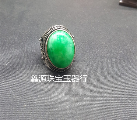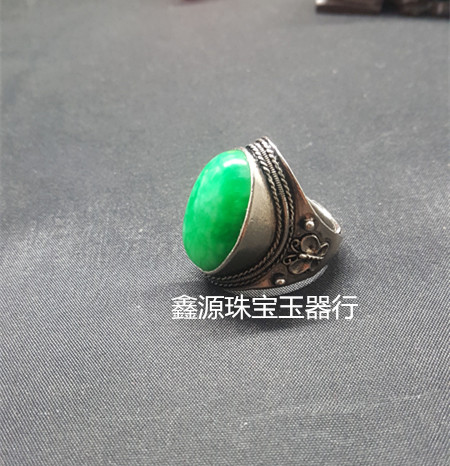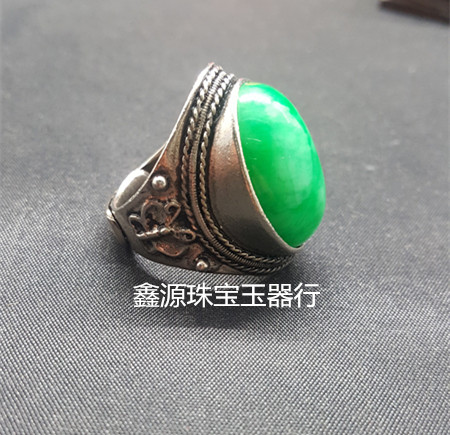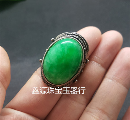New cyanosis emerald ring alive with male and female zummy green egg-shaped Tibetan silver inlaid with full fashion ring