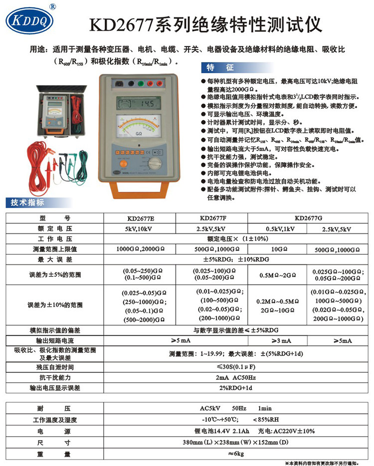 Conda KD2677 E F G insulation resistance characteristics tester transformer motor cable switch measuring instrument