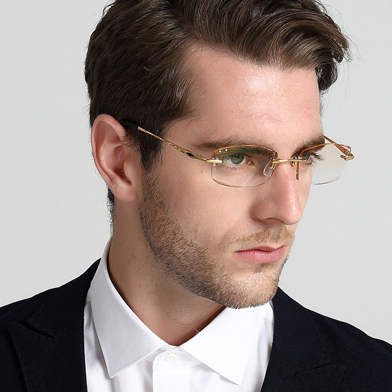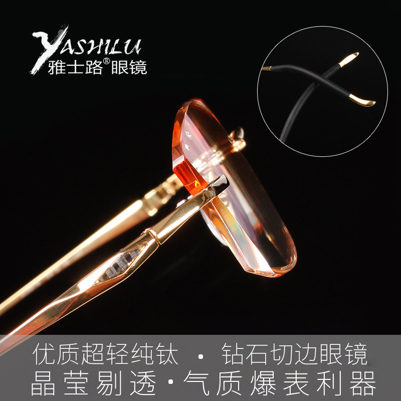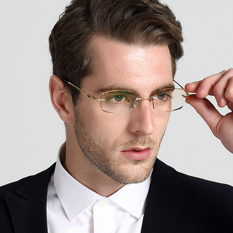 Titanium Frame Male Light Comfort Pure Titanium Business Man Tide Diamond Cut Edge No Frame Glasses Slice Nearsightedness Anti radiation 087