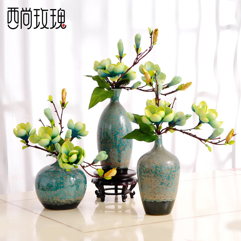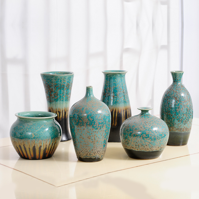 Emerald Green Stream glaze Jingdezhen vase flower art