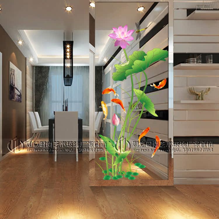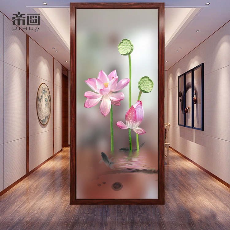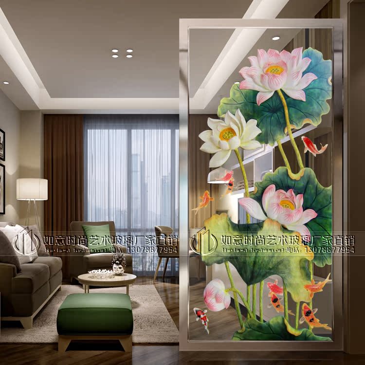 Modern simple light luxury art glass living room partition screen bathroom frosted mask decoration background wall Lotus flower