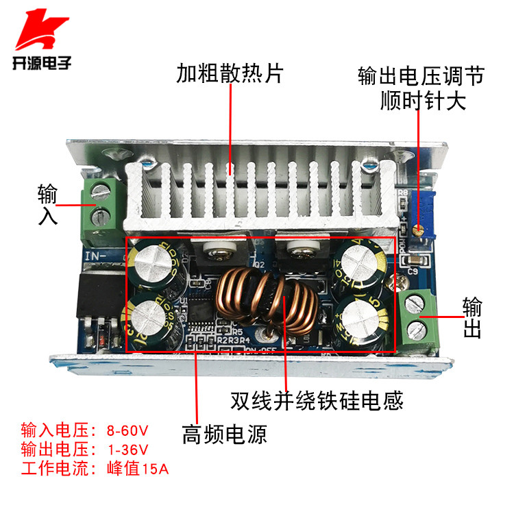 DC-DC DC adjustable step-down power supply module synchronous rectifier 15A200W high power 8V-60V to 3V-24V