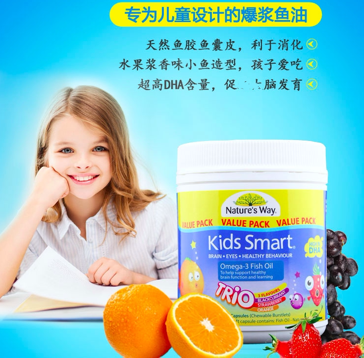 Li Xiaopeng recommends Australia imported Nature's Way Jiasmin children's fish oil multi-flavor 180 capsules