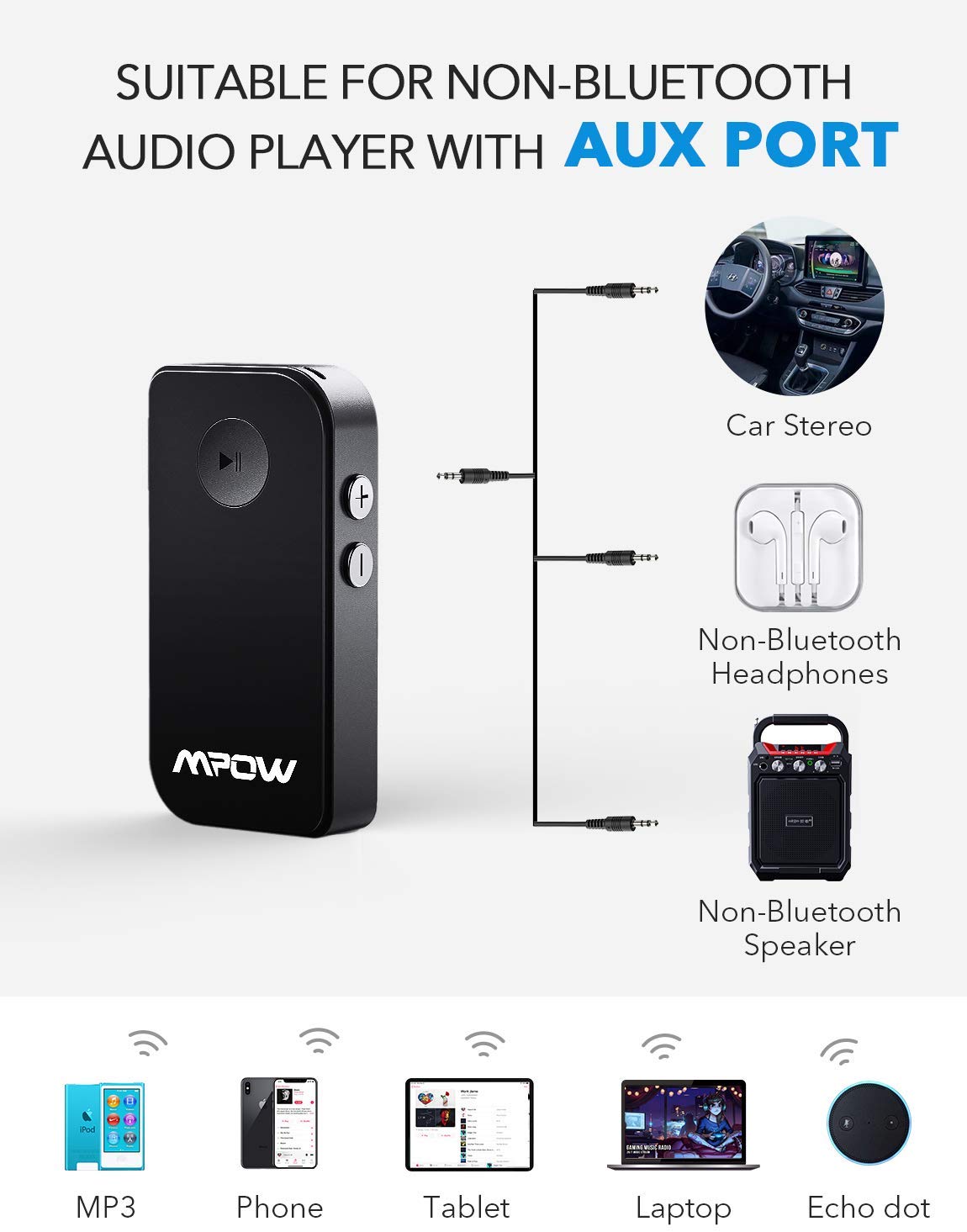 Mpow 044 Bluetooth 5 0 Receiver Wireless Car Audio Adapter