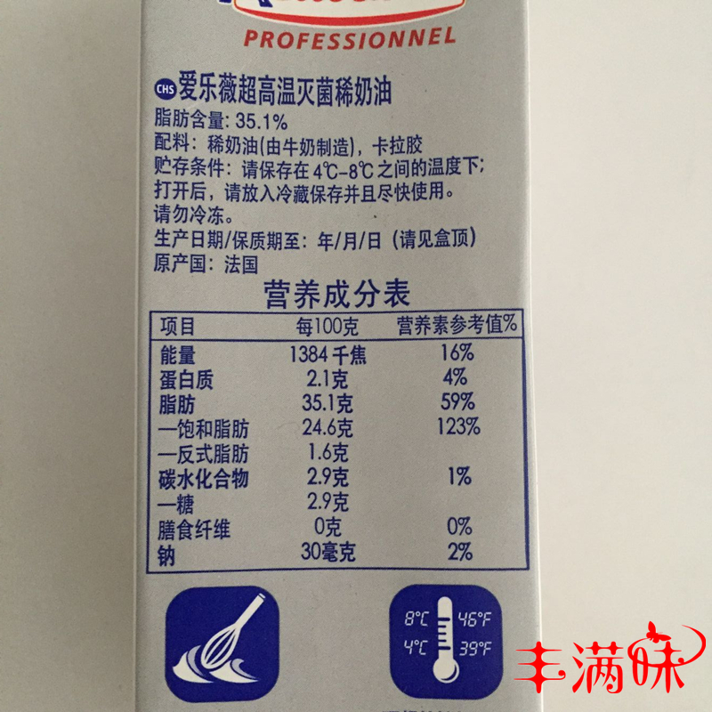 Baking Raw Materials France Import Philharmonie Wei Iron Tower Light Milk Oil Fresh Animal Rare Cream Framed Flowers 1L Dress * 2 bottles