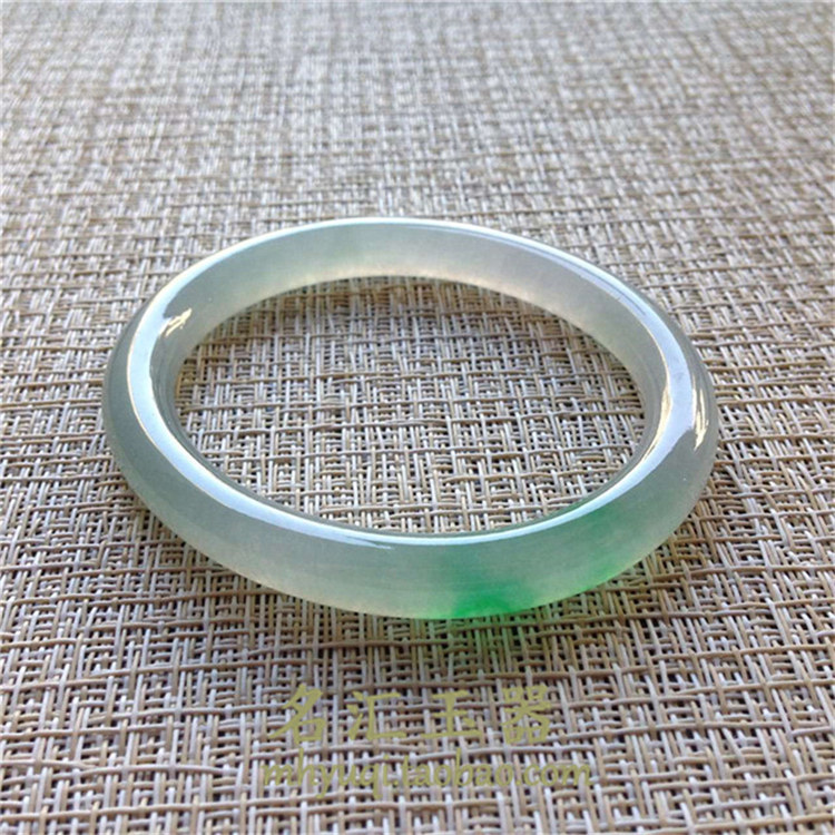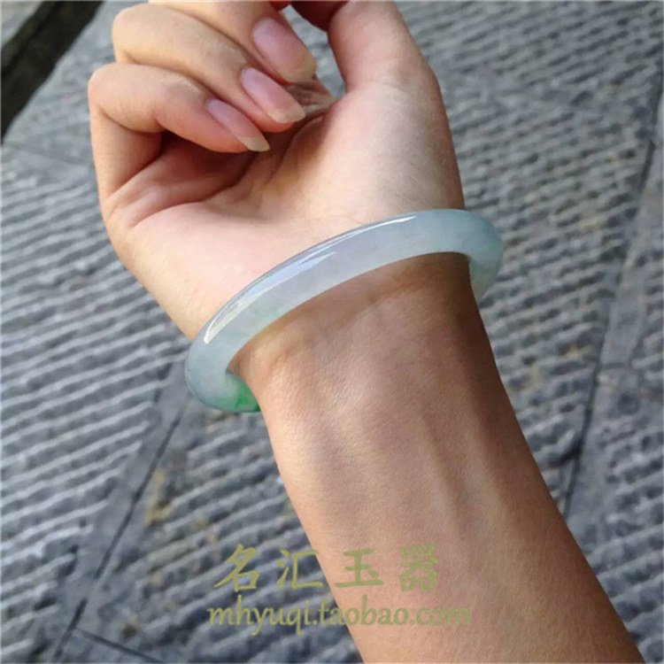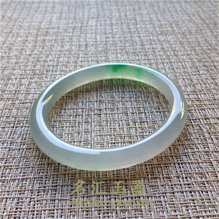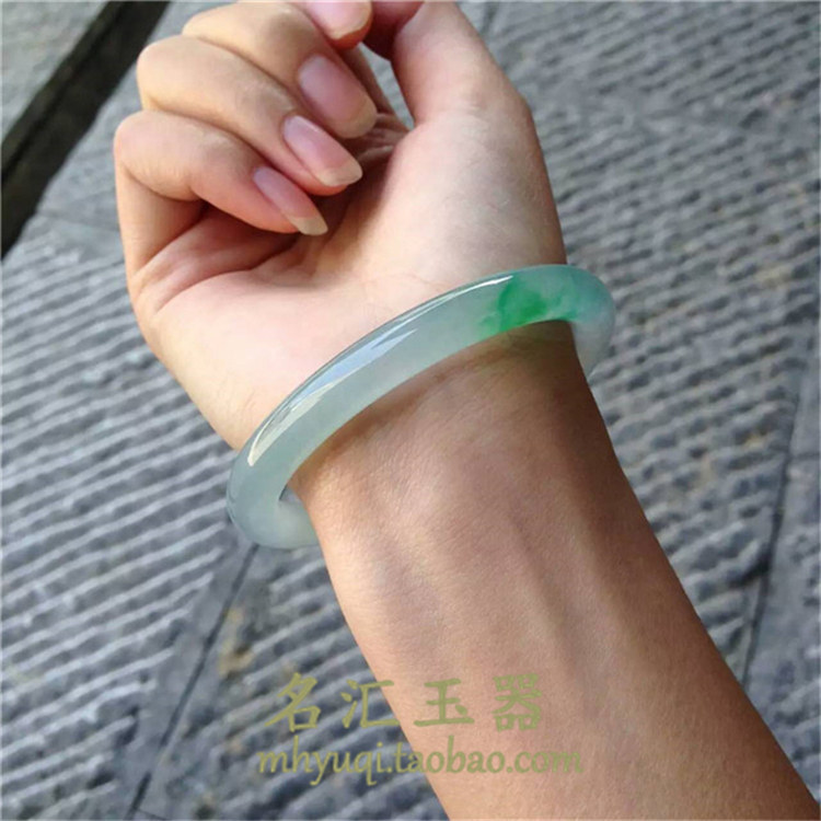 Natural A cargo Myanmar ice seed floating green flower emerald bracelet fine round bar yang green Guido jade bracelet with wide version of bracelet