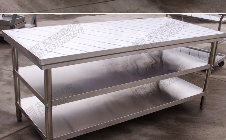 Commercial stainless steel three-layer work table operating table cabinet kitchen assembly and disassembly double layer hotel Hodeux table