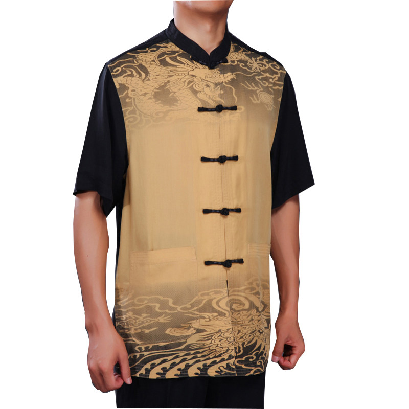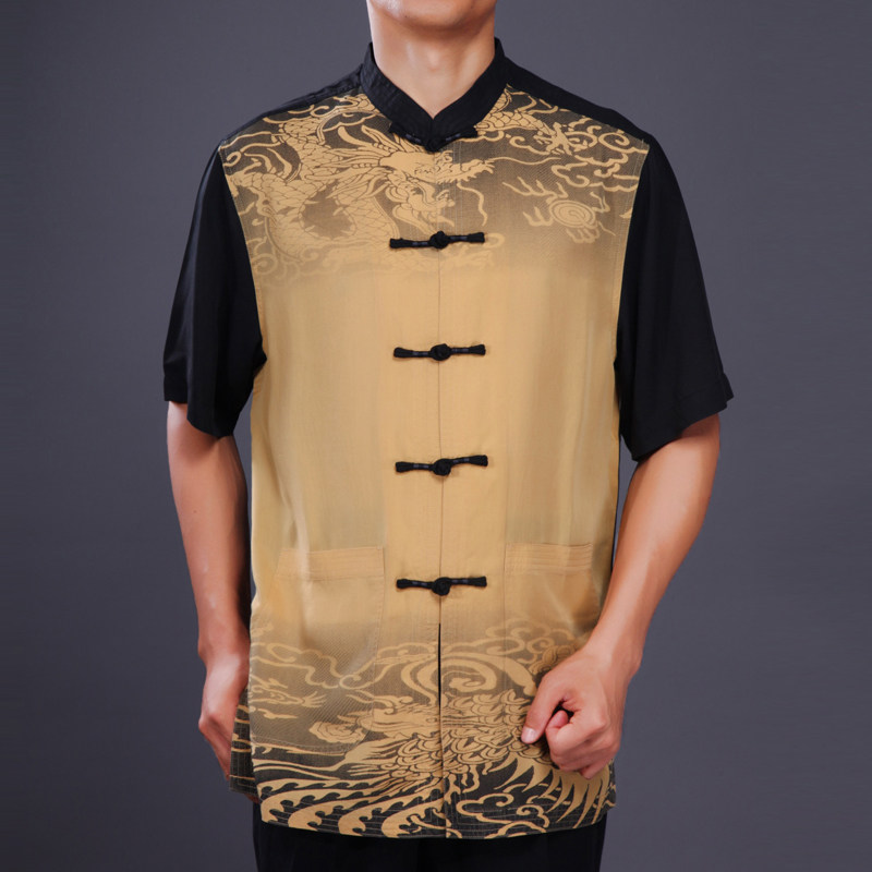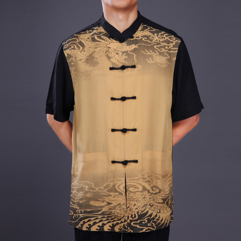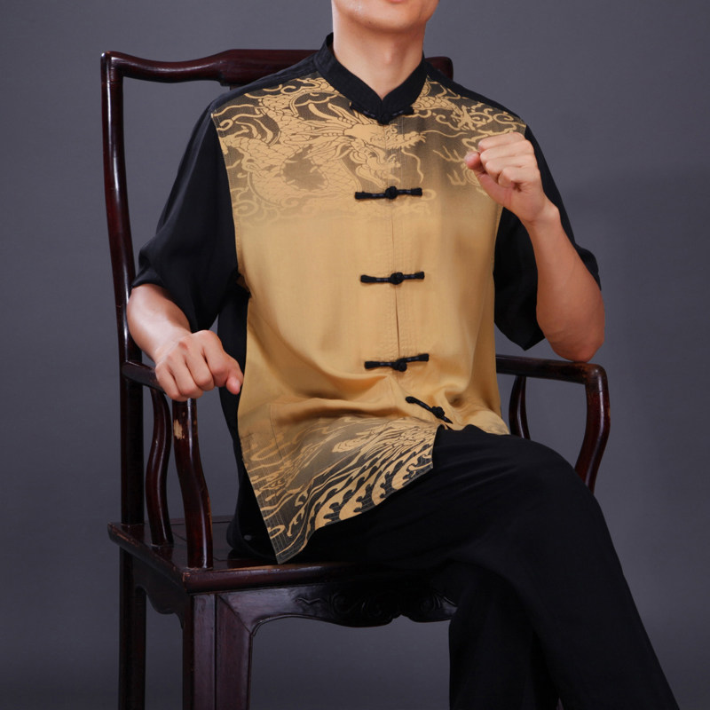 Bafolong fashion ethnic style men's Tang and summer dress new middle - silk Chinese short - sleeved tops