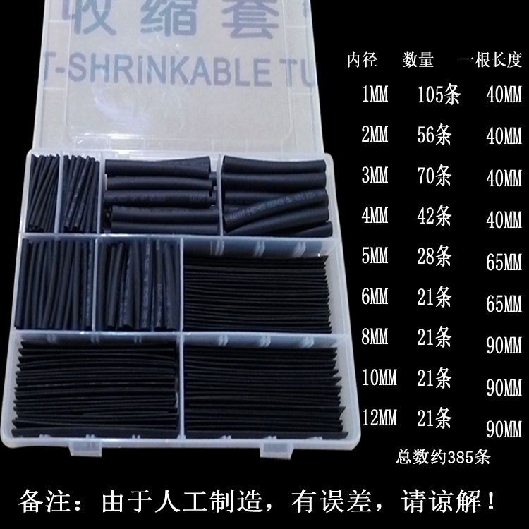 Commitment heat shrinkable tube black electrician triple thermal sleeve box set household DIY electrical insulation environmental protection flame retardant