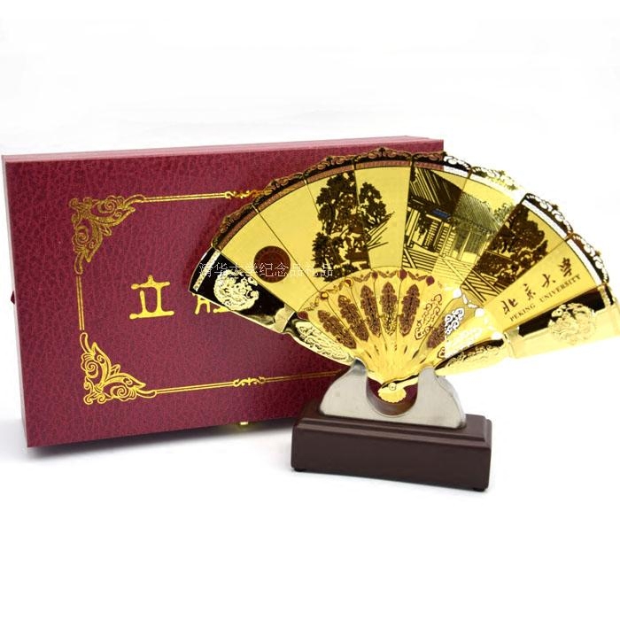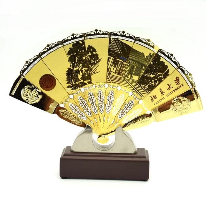 Peking University Beijing's Tsinghua University memorabilia gold fan sub-fan swing piece in kind