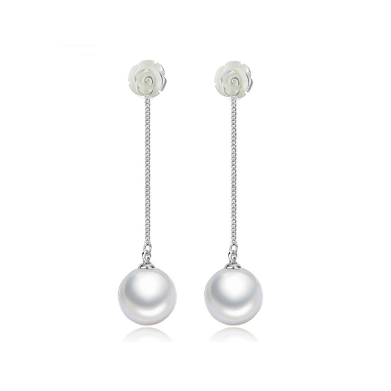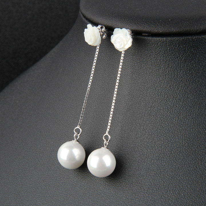 925 sterling silver ear needle mother oyster pearl earrings rose female Korean long version earrings earrings silver jewelry hypoallergenic