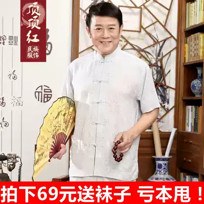 Special summer cotton linen Tang men's short sleeve set leisure Chinese clothes half sleeve linen middle-aged and elderly dad clothes