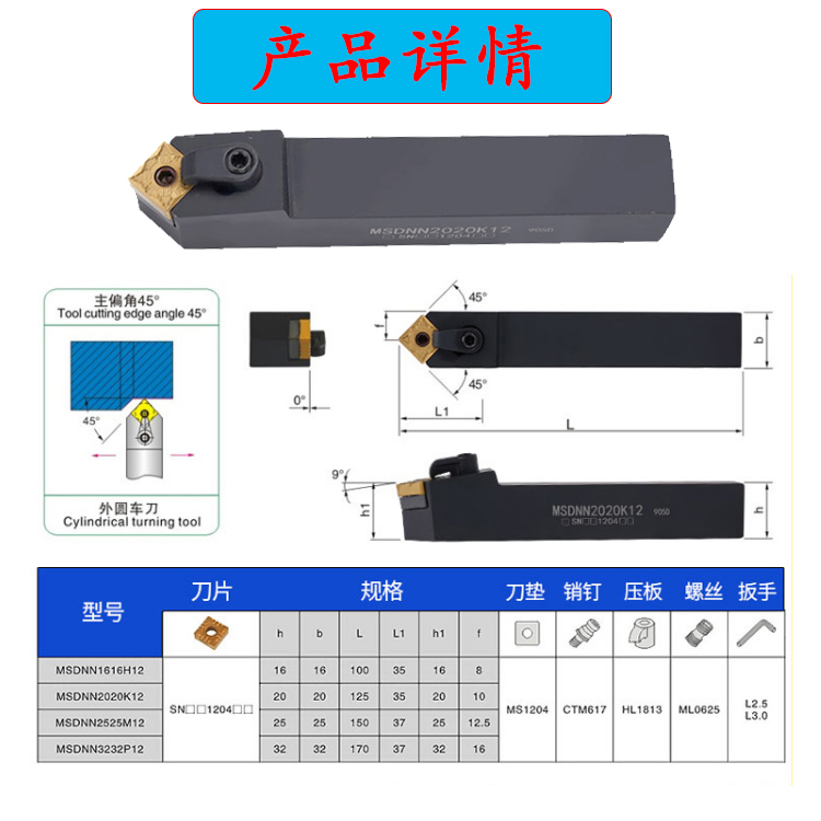 45 degree turning tool MSDNN1616H12 2020K12 2525 3232P12 4 compound turning tool