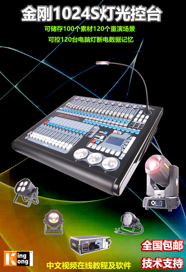 King Kong 1024S lamp control desk Chinese built-in program Wedding Dance Desk Lamp Light Show Beam Pau Sound and Sync