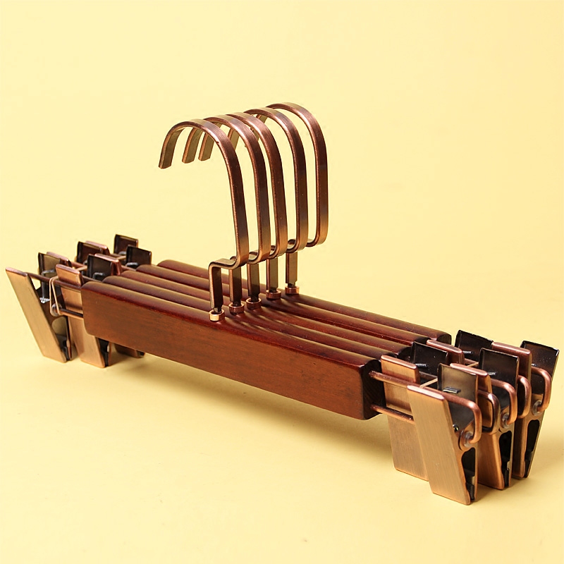 Adult unisex solid wood pants clip Batch clothing store pants rack Wooden bronze pants hanging skirt clip vintage
