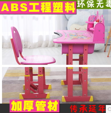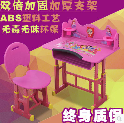 Children Student Cartoon Bald Head Strong White Snow Princess Male Girl Plastic Lifting Adjustment Class Table And Chairs Study Writing Desk-Taobao