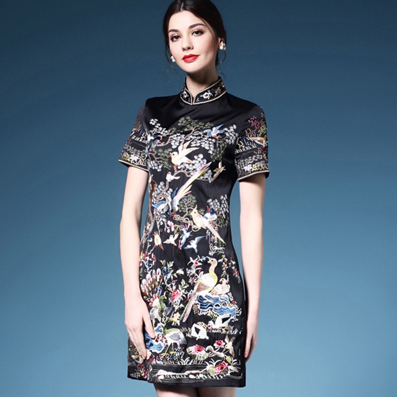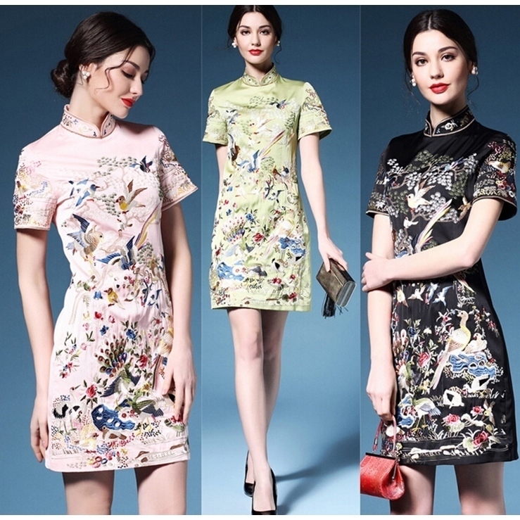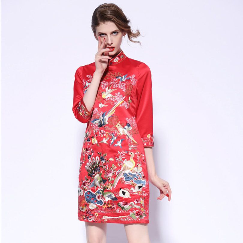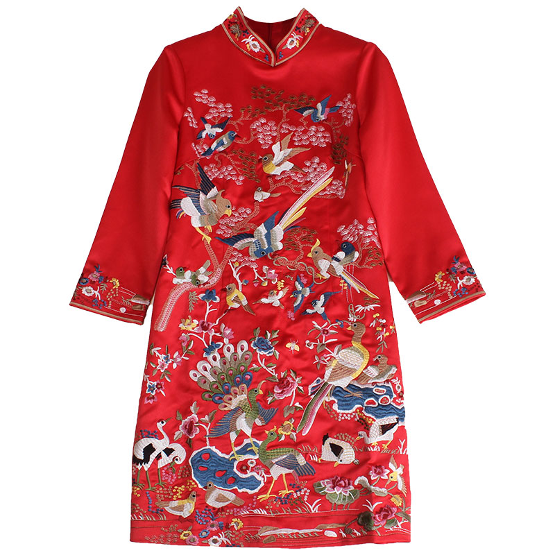 China Feng 2021 new female dress retro short sleeve embroidery modified autumn flaggown dress middle - long version