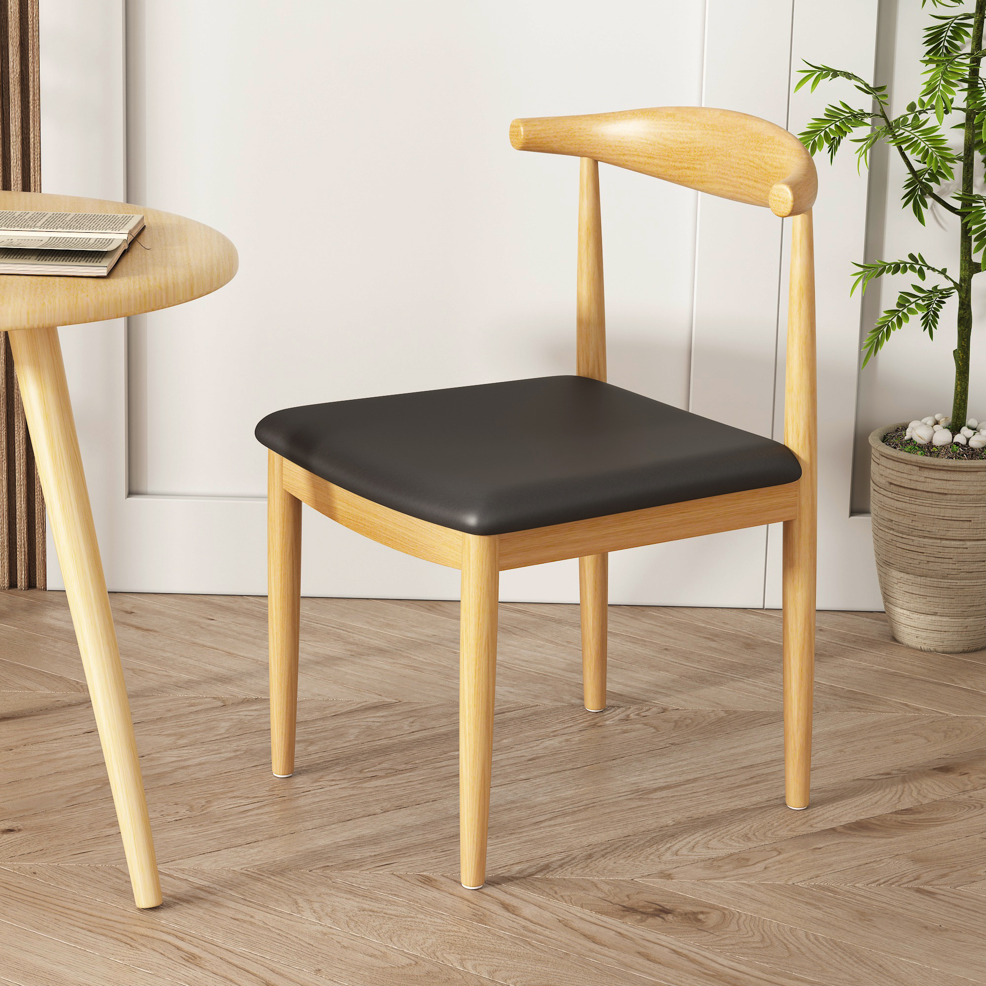 Horn chair Imitation solid wood wrought iron dining chair Simple backrest stool Nordic desk chair Milk tea shop dining table and chair combination