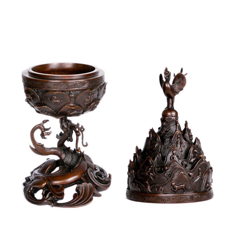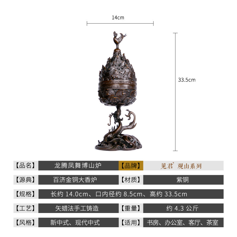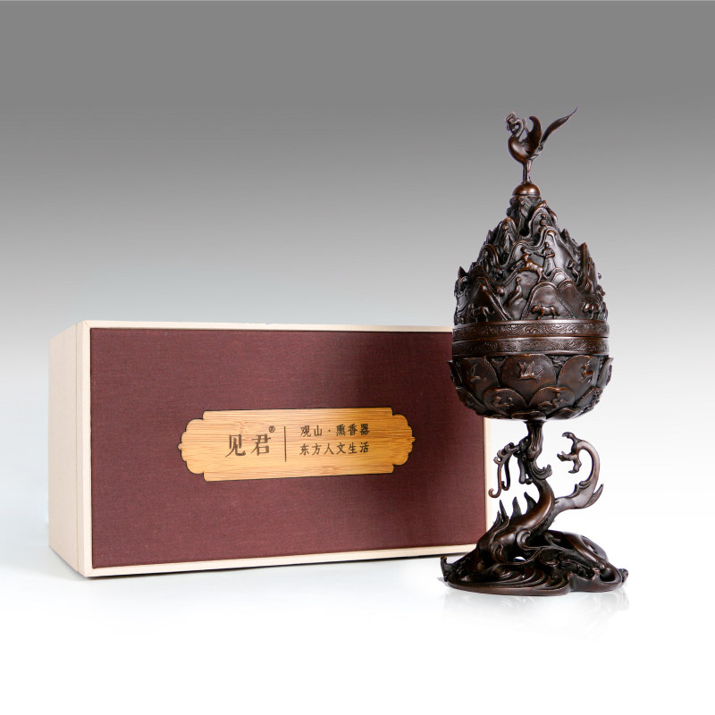 See Jun pure copper big Boshan furnace incense burner seal incense burner pure copper ring incense burner art ornaments collection