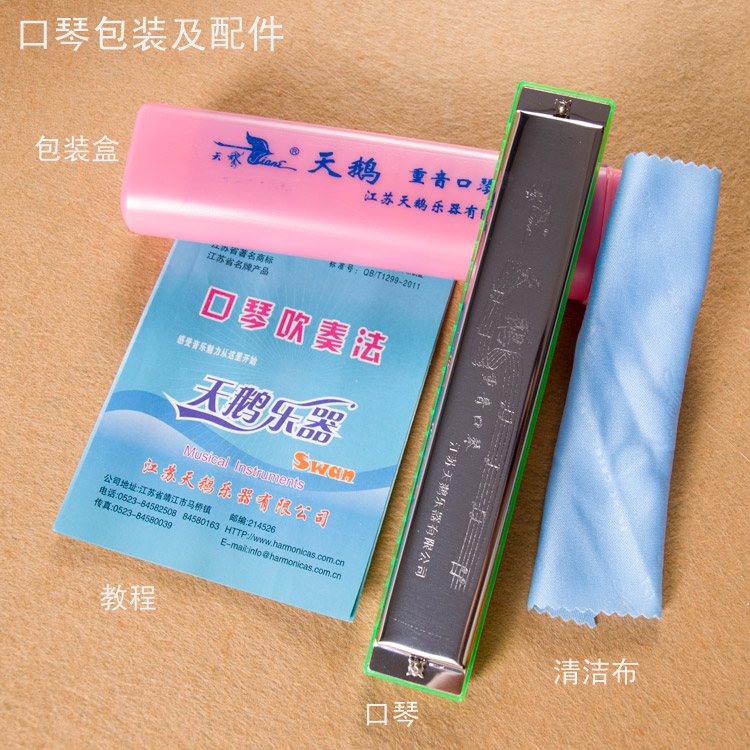 Swan polyphonic 24 hole C harmonica instrument Students: beginners to harmonica playing harmonica