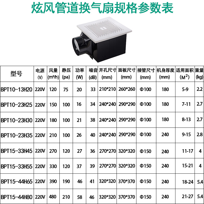 BPT10-13H20 (120m3h) Air volume BPT10-23H25 (150m3h) Air volume BPT10-23H30 (180m)