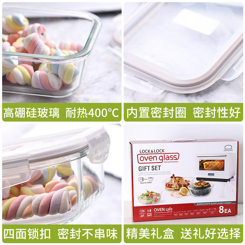 Lekou Lekou glass lunch box crisper box food grade microwave oven can be heated special refrigerator set storage box bowl