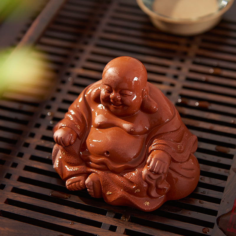 Han and Tang Zisha Tea Pet Yixing Zisha Maitreya Buddha Handmade Sculptures Tea Play Kung Fu Tea Ceremony