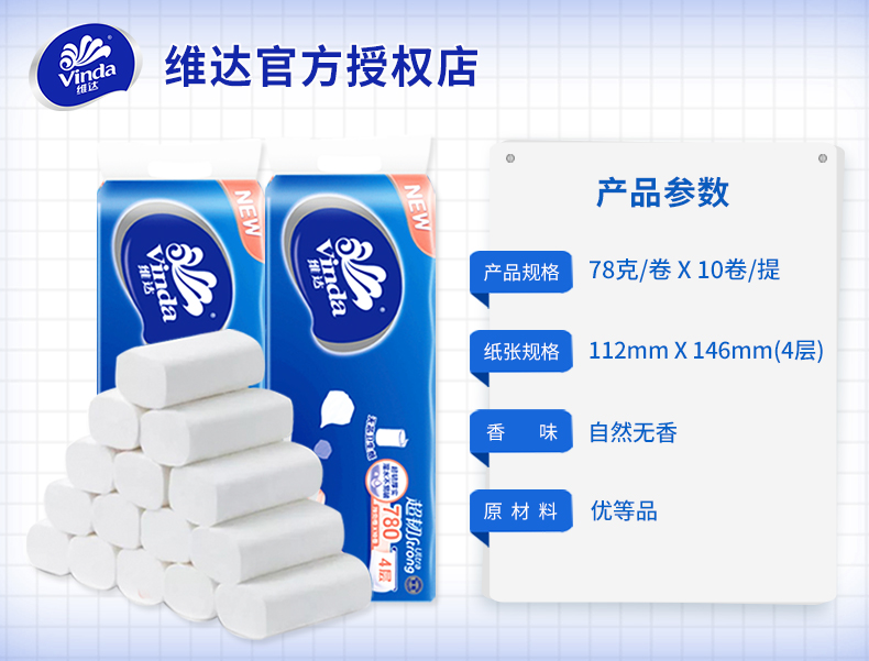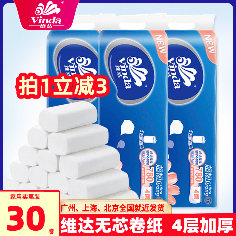 Vinda roll toilet paper Toilet paper Household large roll paper coreless affordable box batch toilet paper Toilet paper Powder room roll toilet paper