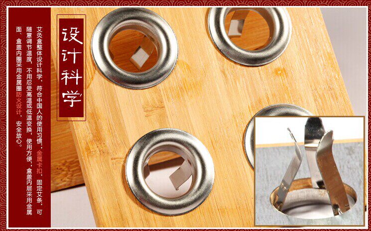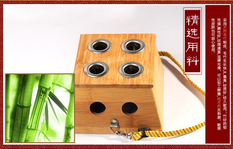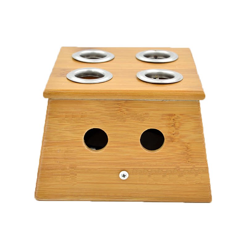 Four - hole moxibustion box thickening bamboo acupuncture tool wooden moxibustion box 4 eye acupuncture box Axinocence rack