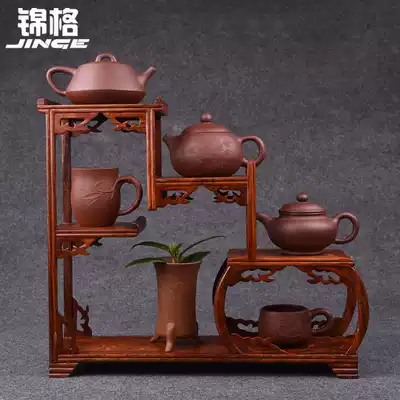 Jinge rosewood Bogu rack Solid wood purple sand pot rack Mahogany teapot rack Duobao pavilion Chinese display rack