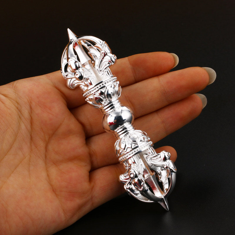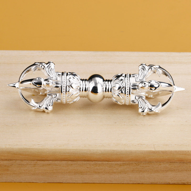 Sterling silver five-strand vajra pestle 10CM Yongle style Tibetan tantric magic instrument pure handmade gifts to the master offering
