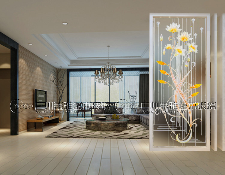 Art glass porch background wall simple European modern partition porch European style happy flowers