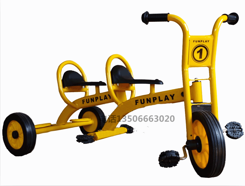 Funplay Kindergarten Children's Car Double Child Car Yellow Charger Children Three-wheeled Bicycle Training Car