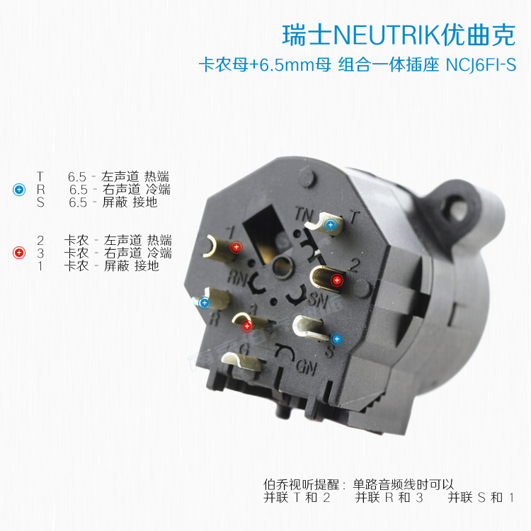 NCJ6FI-S Swiss Neutrik Kanon Mother 6 5 socket dual purpose PCB easy solder cup type socket