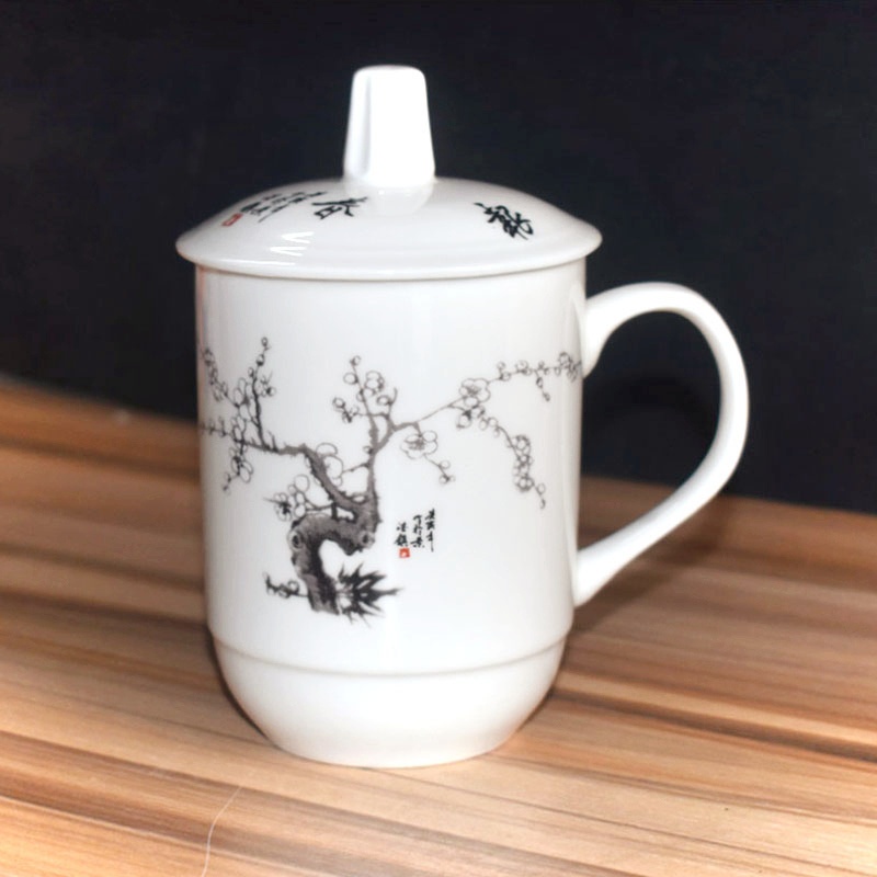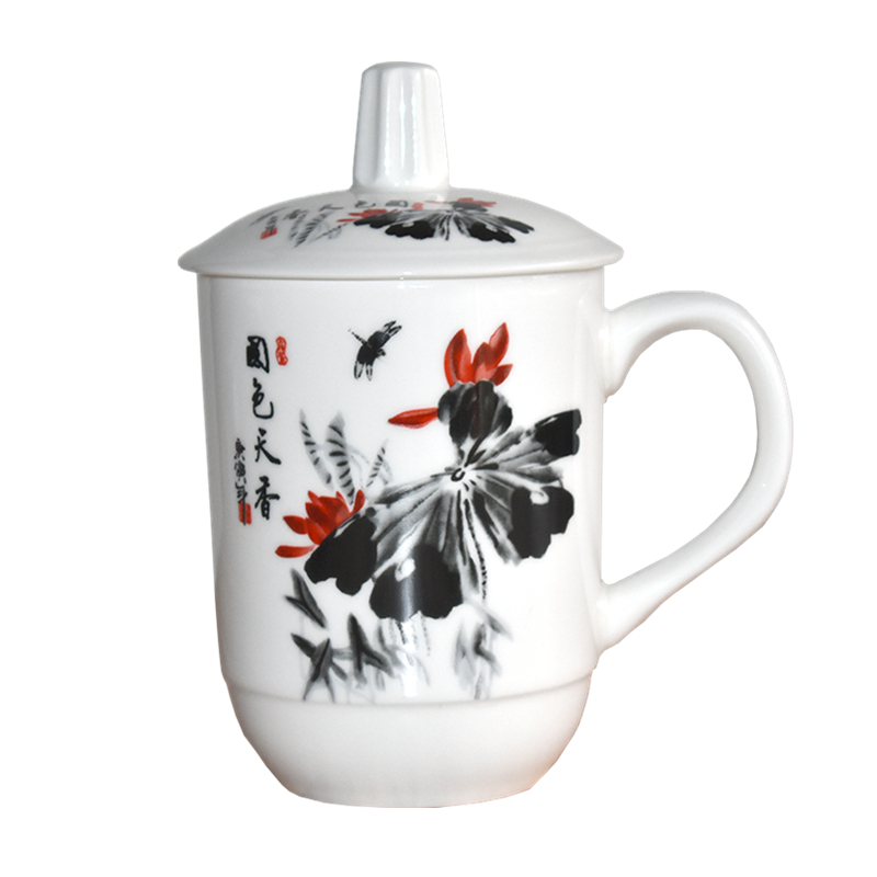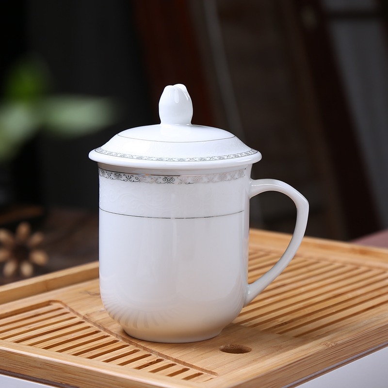 Jingdezhen Ceramic with lid Large number owners Tea Cup Office Meeting Drinking Water Cups Teahouse Guesthouse Special Lettering LOGO