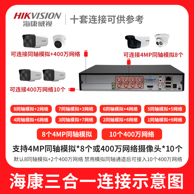 Hikvision analog DVR hard disk recorder coaxial hybrid HD surveillance host 2 million 7808HQH-K1
