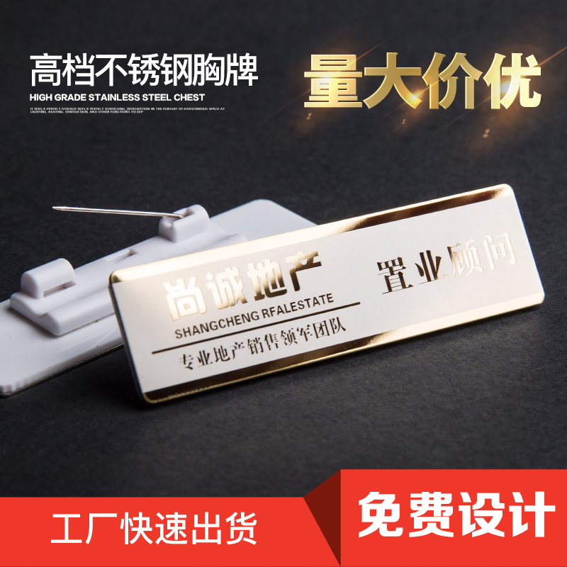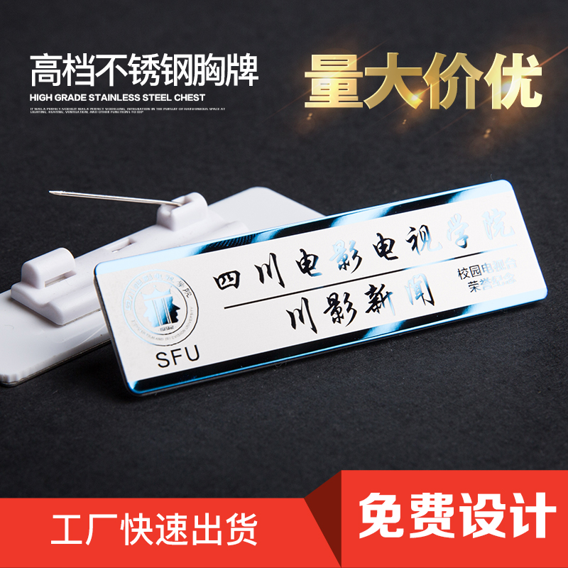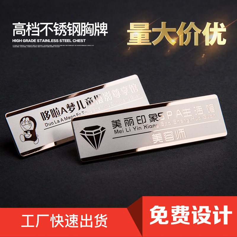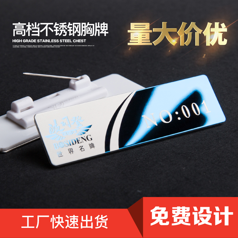 Stainless steel breasted set to be a magnet Biking type work card custom metal working sign making employee last name Nameplate Chest Card