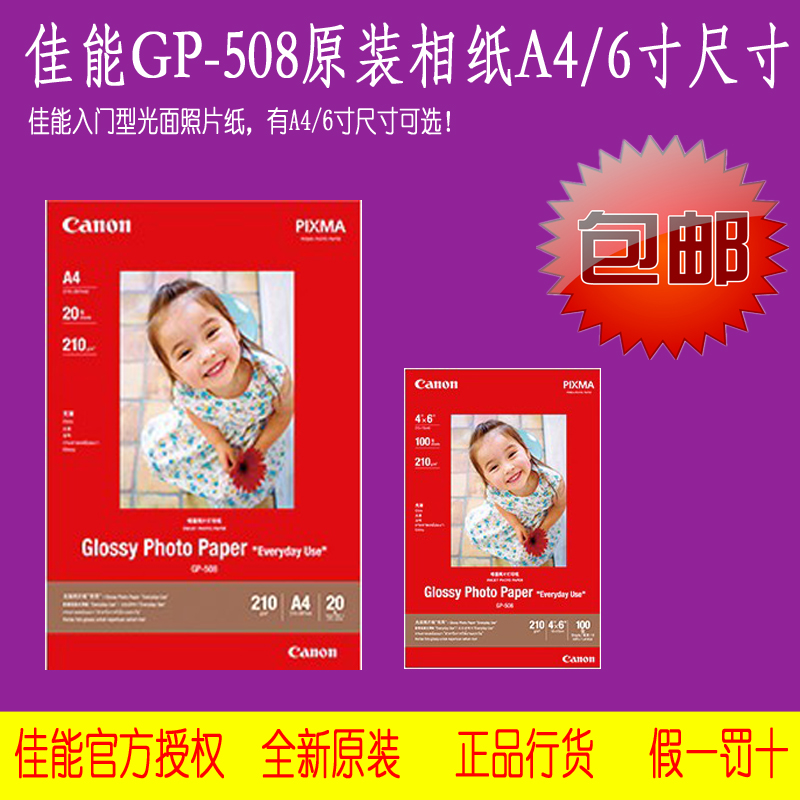Canon Original GP-508 Glossy Photo Paper Six Inch Photo Paper 4R A4 A6 RC Premium Waterproof TS3380 TS8380 MG3680 Inkjet Printer Plastic Sealing Machine Plastic Film