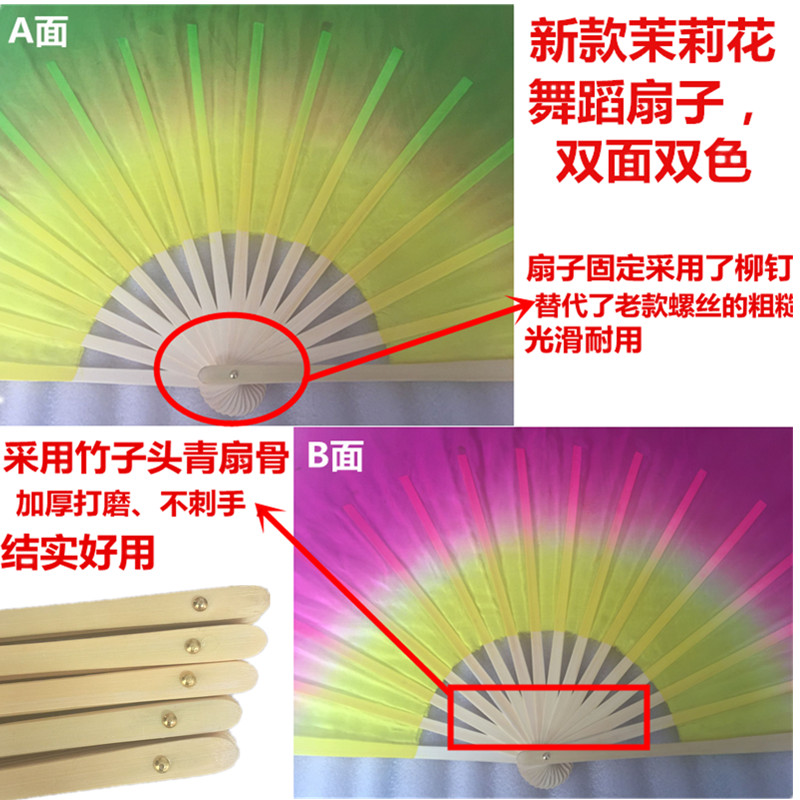 2016 CCTV Spring Festival Gala jasmine dance fan 1 2 feet pure silk fan double-sided two-color Yangko fan