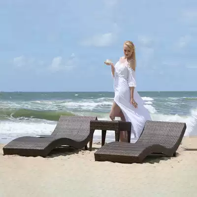 Outdoor reclining bed lounge leisure beach chair swimming pool recliner rattan chair balcony garden rattan recliner