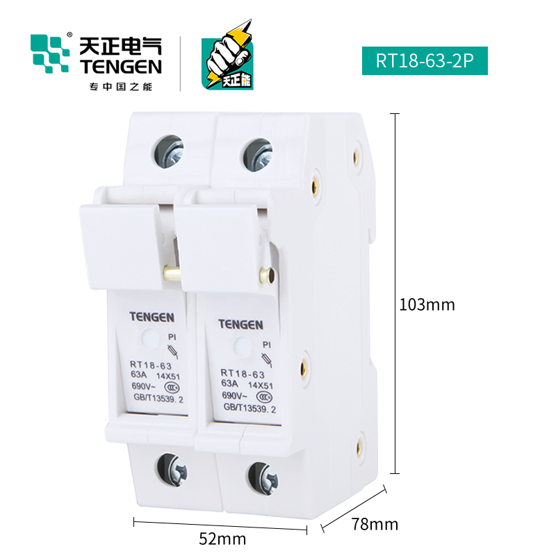 TENGEN Tianzheng Electric RT18-63-2P fuse seat guide rail ceramic bipolar 63A fuse base